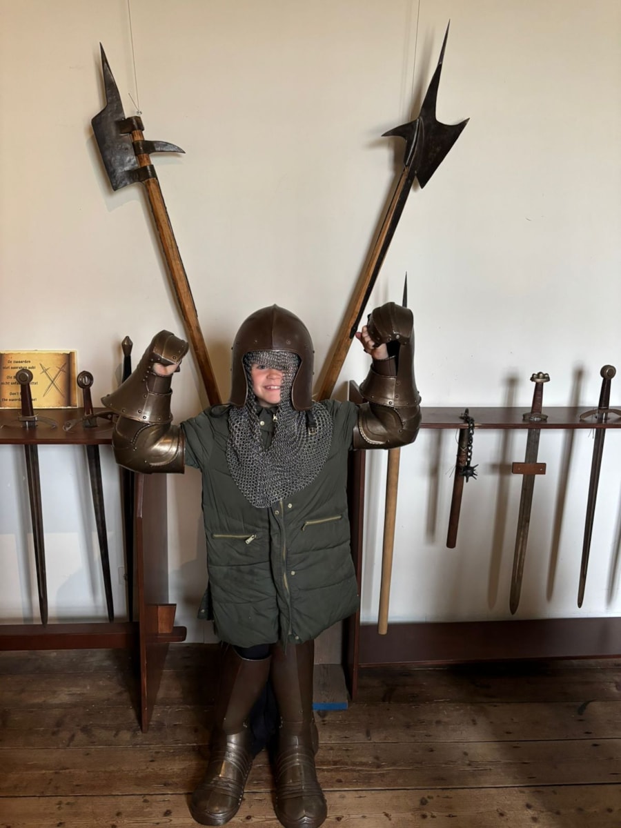 Dinsdag waren we in een echt Middeleeuws kasteel, superleuk. We werden ontvangen in de ridderzaal waar een meneer ons van alles vertelde maar ook onder de indruk was van de slimme vragen die de kinderen stelden. Daarna deden we een speurtocht; donkere kamertjes, gevangenis, het gemakje, ervaren hoe zwaar een ridder-outfit is, krappe donkere wenteltrappen, buiten op de kantelen en nog even met het hoofd door het schavot. Ja, het was best wel spannend voor sommigen. Op het Lubertitheater meer over onze excursie. In de Kwieb maak ik een foto album aan met alle foto’s van deze excursie.